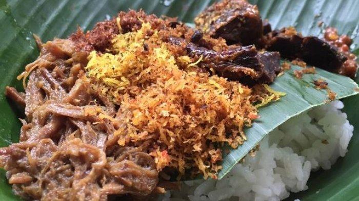 TRIBUNNEWSWIKI.COM - Nasi Krawu atau Sego Krawu adalah makanan tradisional yang terdiri dari nasi dan aneka menu pelengkap seperti daging suwir, sambal serta serundeng yang terbuat dari parutan kelapa.