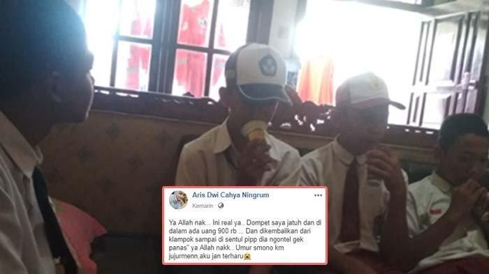 Dalam postingannya, Aris Dwi Cahya Ningrum menceritakan bahwa dompetnya yang berisikan uang Rp 900 ribu telah jatuh.