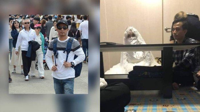 Sang kekasih pun sudah didandani menggunakan dress pernikahan serta menggunakan cadar.