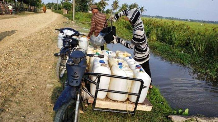 Dikutip dari Kompas.com, dua warga sedang mengisi air parit ke dalam jirigen di Desa Matang Jurong, Kecamatan Tanah Jambo Aye, Kabupaten Aceh Utara, Rabu (21/8/2019).