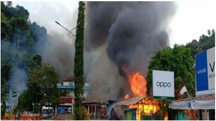 Sejumlah kios dibakar oleh para demonstran yang ada di Pasar Tumburuni, Fakfak dan jalan menuju pasar.