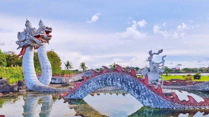 Objek wisata di Pulau Kumala menggabungkan unsur kebudayaan Kutai Kartanegara dengan permainan dan fasilitas modern.