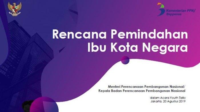 Rencana pemindahan ibu kota tersebut termaktub dalam materi paparan Kementerian PPN / Badan Perencanaan Pembangunan Nasional (Bappenas) di acara Youth Talks pada 20 Agustus 2019.
