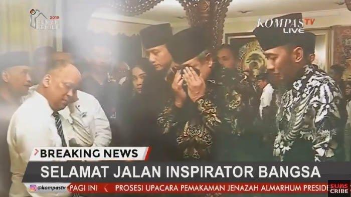 Presiden RI ke-6 Susilo Bambang Yudhoyono (SBY) menangis di rumah duka BJ Habibie, Kamis (12/9/2019). (Kompas TV)