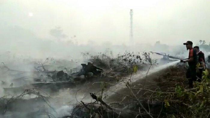 Awalnya tim BPBD memadamkan titik api karhutla yang terjadi di Desa Bayas.