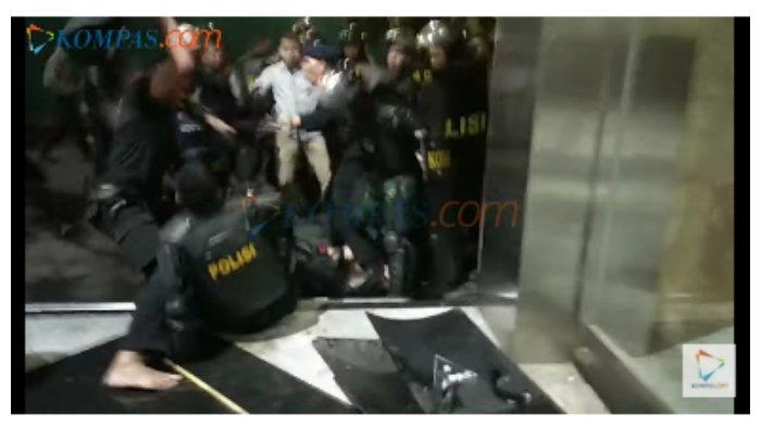 Di tengah kerusuhan yang terjadi pasca-demo mahasiswa di depan gedung DPR, Selasa (24/9/2019), sejumlah polisi melakukan pengroyokan terhadap seorang demonstran.