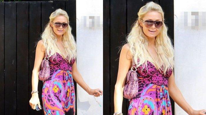 Dari foto yang ditangkap, Paris Hilton tampak berjalan santau, dengan rambut yang dibiarkan bebas tergerai.