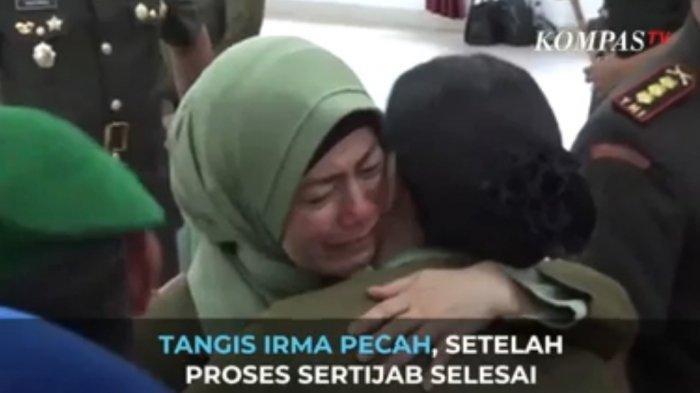TRIBUNNEWSWIKI.COM - Irma Nasution tak bisa menahan air matanya saat mendampingi sang suami yang dipecat dari jabatannya sebagai Dandim Kendari.