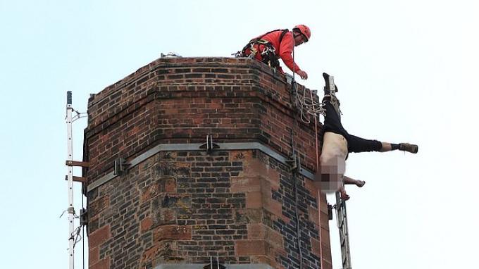 Tidak jelas mengapa pria itu, yang tergantung dari kaki kirinya, memanjat cerobong asap, dengan penduduk setempat mengatakan bahwa ia mungkin telah memanjat sekitar pukul 10.30 malam kemarin.