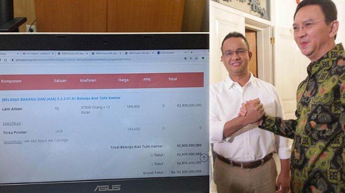 Kejanggalan pada situs APBD DKI Jakarta berupa anggaran untuk lem aibon sejumlah Rp 82,8 miliar, warganet kritik Anies dan bandingkan dengan Ahok