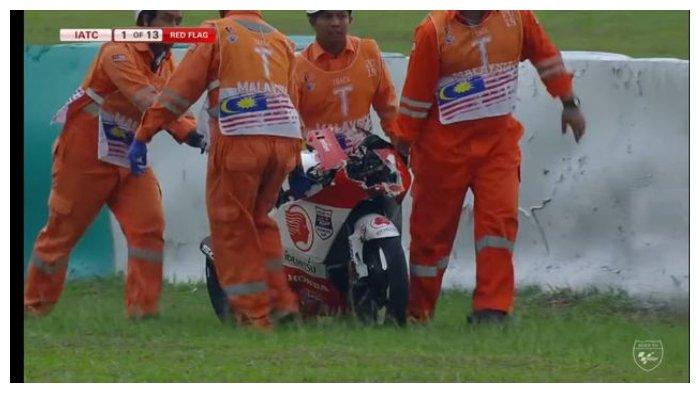 Sesaat setelah kecelakaan, pembalap berusia 20 tahun tersebut mendapatkan pertolongan pertama dari tim medis di pinggir lintasan.