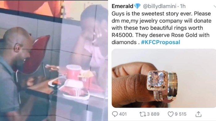TRIBUNNEWSWIKI.COM - Video seorang pria melamar kekasihnya di dalam restoran Kentucky Fried Chicken (KFC) di Afrika Selatan telah menjadi viral di media sosial Twitter.