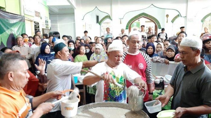 Pembagian bubur samin di Masjid Darrusalam Jayengan Surakarta, setiap tahun selalu dipenuhi masyarakat beragam latar belakang.
