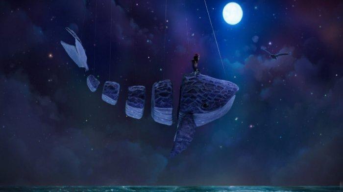 Ditambah visual yang sesuai melukiskan gambar yang nyata berupa sebuah animasi yang memperlihatkan seorang anak mengendarai ikan paus di langit malam.