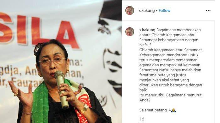 Pendapat Gus Mus soal pernyataan Sukmawati Soekarnoputri itu dituangkan lewat status Instagramnya @s.kakung; pada Sabtu (16/11/2019).
