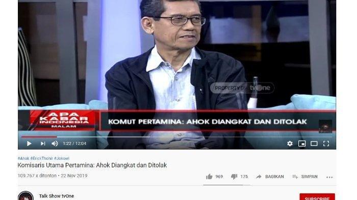Dalam tayangan YouTube program Apa Kabar Indonesia Malam TV One, ia menyebutkan, pengangkatan Ahok menjadi Komisaris Utama Pertamina merupakan bencana bagi bangsa.