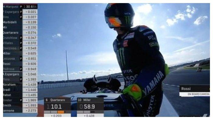 TRIBUNNEWSWIKI.COM - Valentino Rossi terpaksa mendorong motor YZR-M1 miliknya karena sempat bermasalah dan mogok.