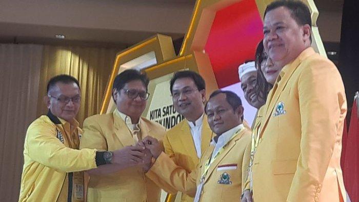 Ketua Umum Partai Golkar Airlangga Hartarto secara resmi kembali terpilih menjadi Ketua Umum Partai Golkar dalam Musyawarah Nasional (Munas) Partai Golkar di Hotel Ritz Carlton, Jakarta Selatan, Rabu (4/12/2019).