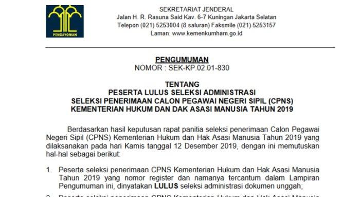 Kementerian Hukum dan Hak Asasi Manusia (Kemenkumham) sendiri sudah resmi mengumumkan hasil seleksi administrasi CPNS 2019.