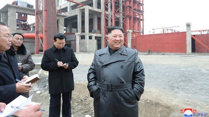 Kim Jong Un tampak bugar dan tersenyum dalam kunjungan lapangan ke sebuah pabrik pupuk yang sedang dibangun di Sunchon, Pyongan Selatan.