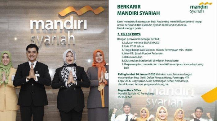 Rekrutmen Bank Syariah Mandiri dibuka sejak tanggal 2 januari 2020 melalui website resmi Bank Syariah Mandiri www.mandirisyariah.co.id/career.(TribunnewsWiki.com/Restu)