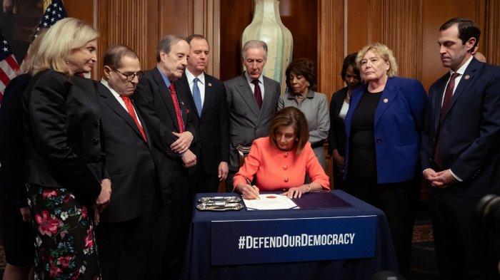 TRIBUNNEWSWIKI.COM - Pimpinan Dewan Perwakilan Rakyat Amerika Serikat (DPR AS) resmi menyerahkan dokumen pemakzulan Donald Trump kepada Senat AS pada Rabu (15/1/2020).