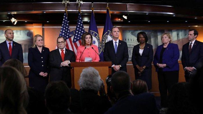 TRIBUNNEWSWIKI.COM - Ketua Dewan Perwakilan Rakyat Amerika Serikat (DPR AS), Nancy Pelosi resmi menunjuk tujuh anggota dewan sebagai 'manajer' pemakzulan dalam pengadilan Senat pada Rabu (15/1/2020).