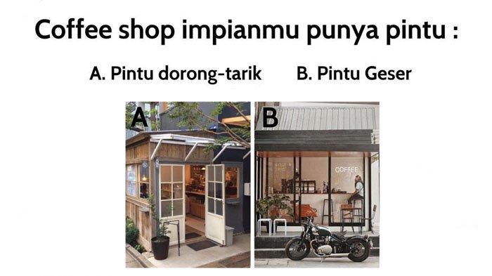 Pilih satu coffe shop dengan pintu dorong atau pintu geser untuk mengungkap karakter dirimu sebenarnya.