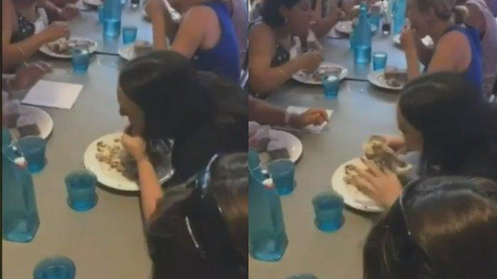 Dalam video amatir tersebut terlihat sejumlah kontestan memakan kue lamington yang disediakan oleh panitia.