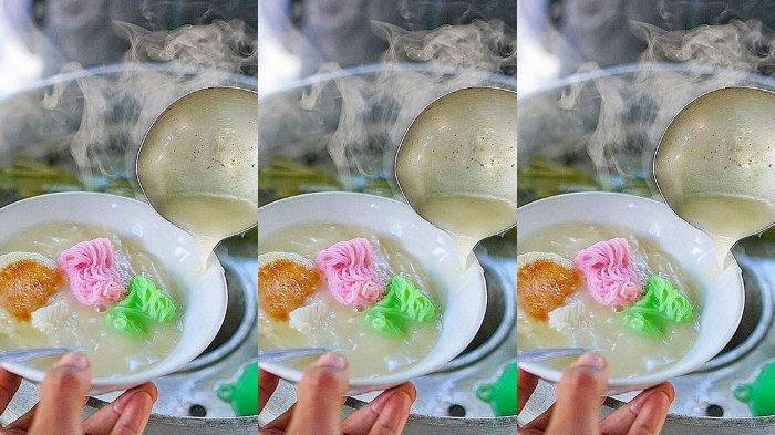 Siraman kuah santan hangat serta gula merah digunakan sebagai pemanis tambahan untuk jajanan ini. (2)