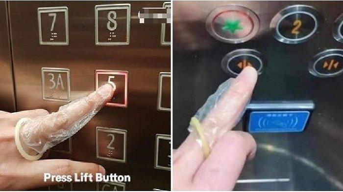 TRIBUNNEWSWIKI.COM - Viral foto jari memakai alat kontrasepsi untuk memencet tombol lift.