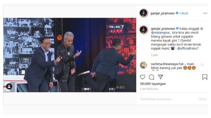 Gubernur Jawa Tengah, Ganjar Pranowo mengunggah video TikTok di akun Instagram pribadinya, @ganjar_pranowo.