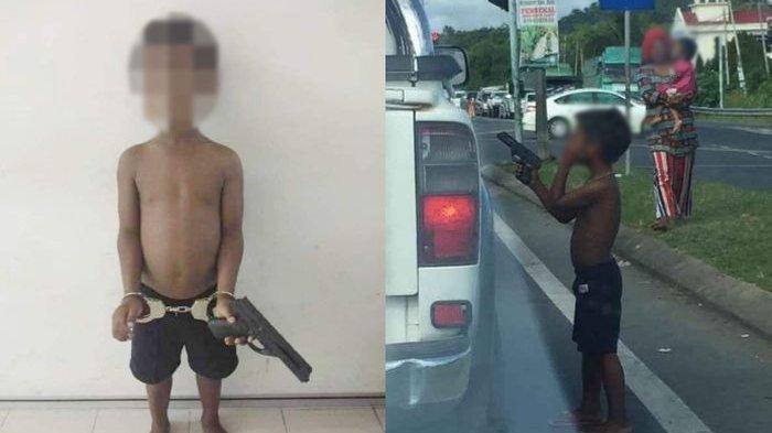 Pengemis cilik ini todongkan pistol ke pengendara mobil di lampu merah saat minta-minta, langsung ditangkap polisi.
