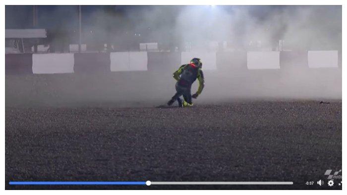 Selain itu, ada yang aneh saat Valentino Rossi bangkit setelah insiden crash.