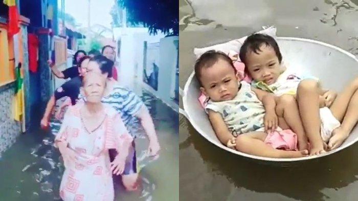 Viral Video Lucu Banjir Jakarta, Emak-emak Syuting Tiktok hingga Anak Terombang-ambing di Atas Wajan