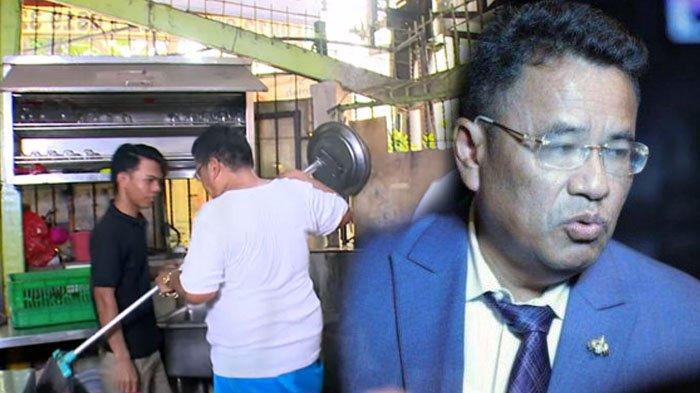 Hotman Paris yang sudah mengenakan kaos compang-camping segera menuju ke dapur Kopi Johny untuk mengepel lantai.