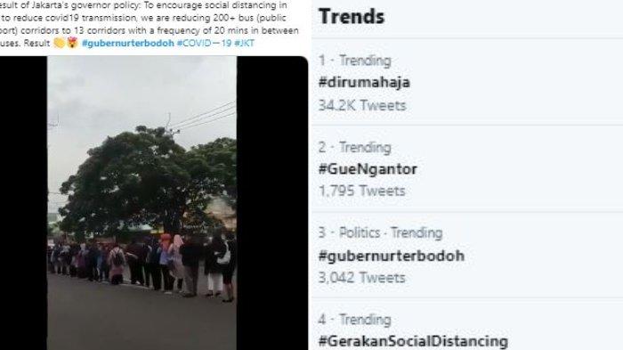 "The result of Jakarta’s governor policy: To encourage social distancing in order to reduce covid19 transmission, we are reducing 200+ bus (public transport) corridors to 13 corridors with a frequency of 20 mins in between two buses. Result Clapping hands signExploding head #gubernurterbodoh #COVIDー19 #JKT," katanya.