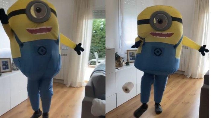 Sayangnya, juggling yang dilakukan Marquez gagal memukau lantaran kostum Minions membuat tubuhnya tak seimbang.