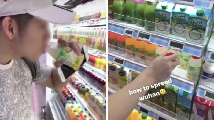 Dalam video tersebut, seorang pemuda berkaus putih terlihat mengambil minuman dari rak pendingin di supermarket sebelum meneguk minuman itu.