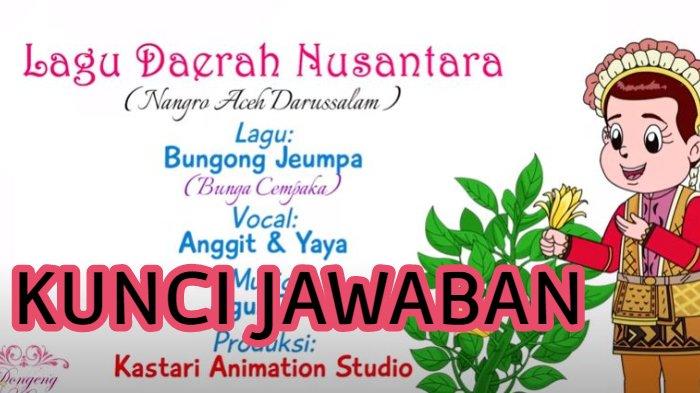 TRIBUNNEWSWIKI.COM - Pertanyaan 'Apa 3 kata daerah Aceh di Lagu Bungong Jeumpa' adalah satu di antara 3 pertanyaan dalam tayangan Lagu dan Pakaian Adat: Aceh, Kalimantan, dan NTT di Program Belajar dari Rumah di TVRI, Rabu 29 April 2020.