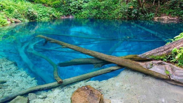 Danau unik ini berada di tengah Taman Nasional Kerinci Sebelat, Kabupaten Kerinci dengan warna air biru yang kontras dengan dedaunan hijau pepohonan di sekitarnya.