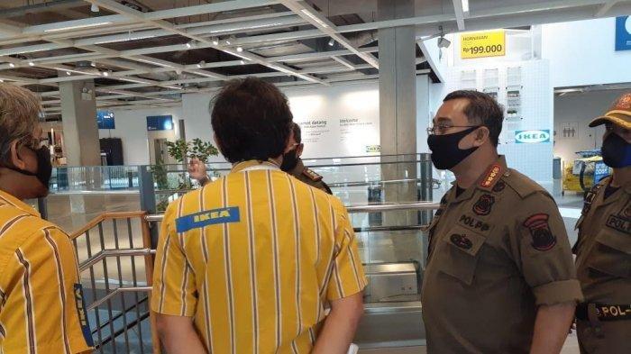 Petugas didampingi pihak manajemen saat melakukan pemeriksaan di pusat perbelanjaan tersebut. Mereka mengecek aktivitas di lantai dasar hingga atas gedung IKEA.