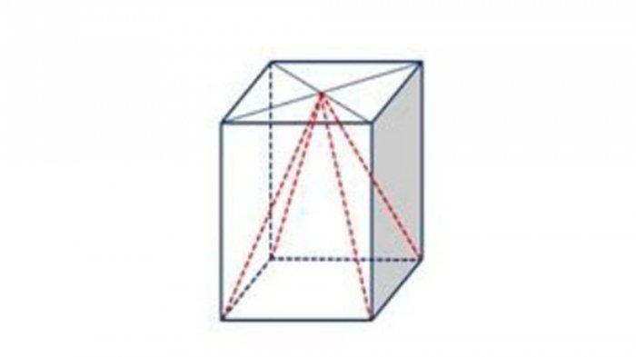 Gambar berikut merupakan penampang sebuah limas pejal terbuat dari besi dengan alas berbentuk persegi diletakkan di dalam sebuah prisma.