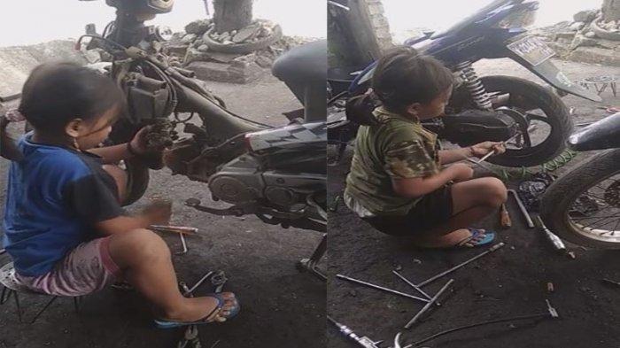 TRIBUNNEWSWIKI.COM - Sebuah postingan viral di media sosial memperlihatkan seorang bocah perempuan nampak sedang membetulkan sepeda motor alias menjadi montir.