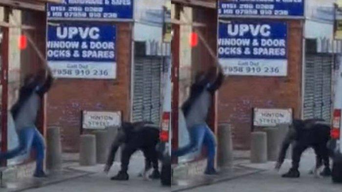 TRIBUNNEWSWIKI.COM - Sebuah rekaman video singkat menunjukkan seorang pria terkena pukulan gagang sapu saat mencoba mendobrak masuk toko.
