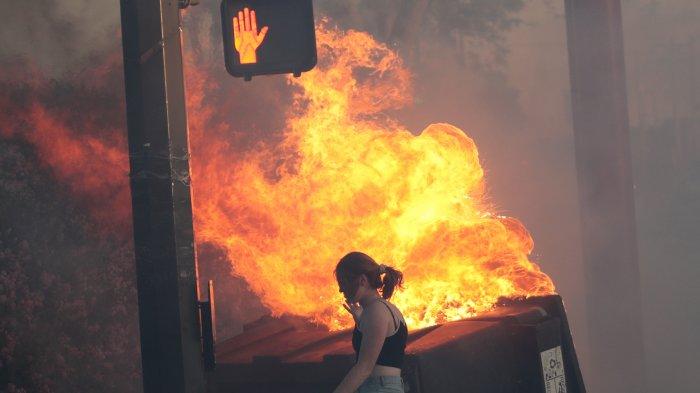 Aksi protes yang awalnya damai perlahan berubah menjadi kerusuhan, Kamis (28/5/2020) waktu setempat.