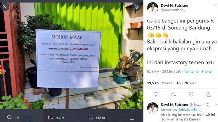 Ketika dikonfirmasi, Parno, selaku Ketua RT 03/15 Desa Gandasari Soreang Bandung membenarkan jika warga yang sudah mudik akan dipasangi papan serupa di depan rumahnya.