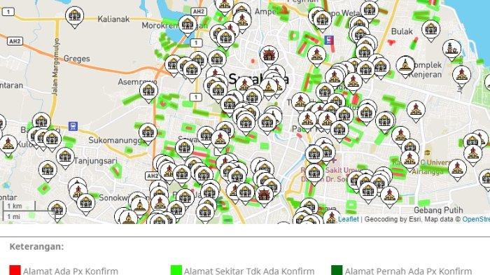 Akses nama dan alamat pasien positif Covid-19 disajikan dalam bentuk peta dengan keterangan gambar.