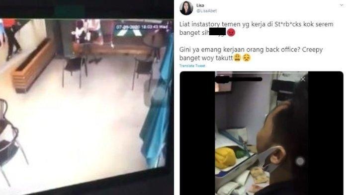 Awalnya terlihat seorang pegawai Starbucks tengah memantau rekaman CCTV di back office.