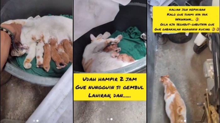 Gembul saat itu ternyata ingin ditemani melahirkan anak-anak kucingnya.